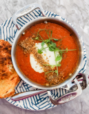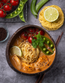 5. For syrup - In a pan, do a sauté of the garnish ingredients (mustard seeds, green chilli, curry leaves, coriander leaves). Add water, sugar, salt and lime juice and let it brew for 3-4 minutes.